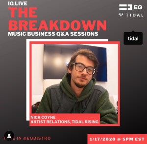 Nick Coyne, artist relations coordinator and playlist curator for the global streaming service TIDAL, will conduct a live online Q&A for artists and members of the music industry today.