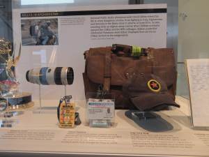 Another display showcased well-used laptops, dusty cameras and lenses, and bent notebooks that had outlived their owners. Once used by reporters and photographers who had traveled to nations in turmoil, these were tools of scribes and shooters who died while working to expose injustice, conflict, and neglect. Especially striking: the half-destroyed Datsun sedan of Don Bolles, an Arizona Republic reporter whose car was blown up in June 1976. Bolles died from his injuries 11 days after the bombing. A newer exhibit paid homage to the five victims of the 2018 shootings in the Annapolis, Maryland, Capital Gazette.