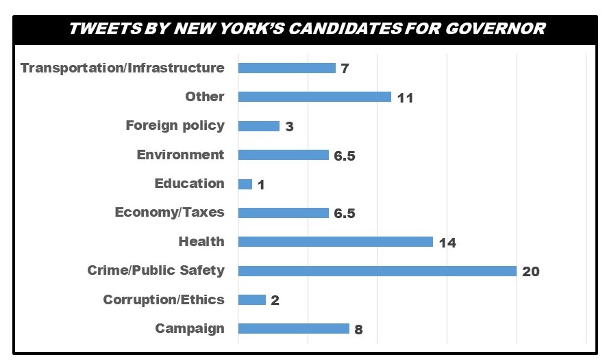 New York’s gubernatorial candidates are tweeting more about crime and public safety than any other topic.