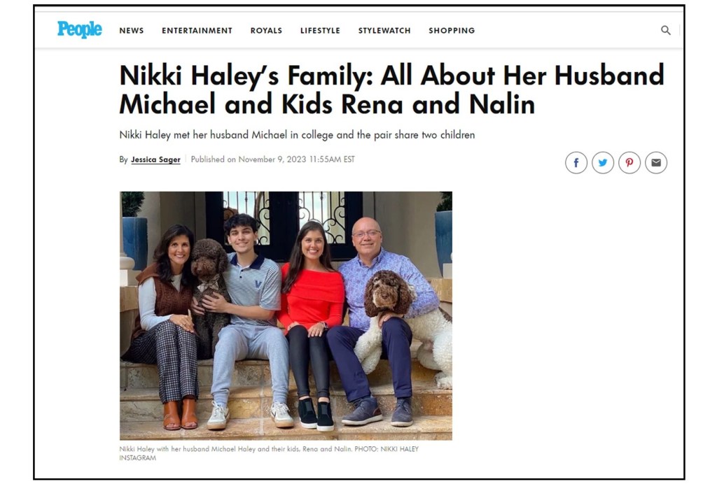 Candidates love to show off their families in warm, fuzzy campaign ads and magazine features like the article People did on Haley’s family.