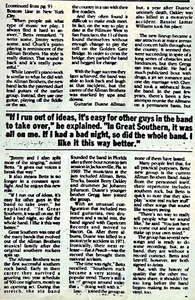 Richard Lee, executive director of the Jandoli Institute, is a former music journalist who often writes about the intersection of music and current events. A copy of his story on Dickey Betts is below. Apologies for the poor quality of the images, which are about 40 years old.